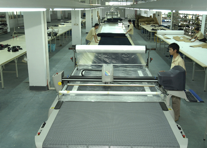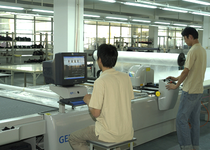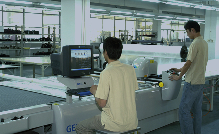 公司采用CAD計算機輔助排料系統進行排料,該系統準確、高效。鋪料機代替手工鋪料的優(yōu)點使鋪料均勻、整齊、松緊適宜、降低工人勞動強度。