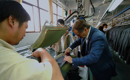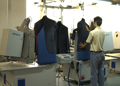 運用高品質的德國BRISAY立模整燙機,采用電腦控制蒸汽輸出量、溫度、壓力、定型、抽濕時間,根據面料的厚薄、質地、性能,以38種不同整燙程序調整以上各個參數,配合服裝的整燙。